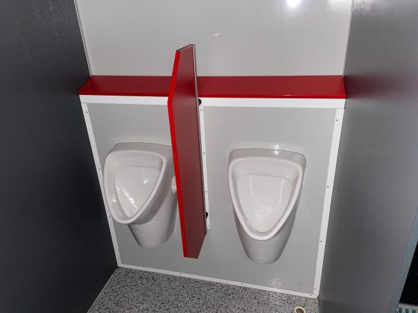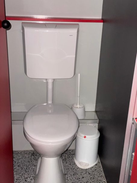 Damenbereich: 3 WC und 1 Handwaschbecken · Herrenbereich: 2 WC, 2 Urinale und